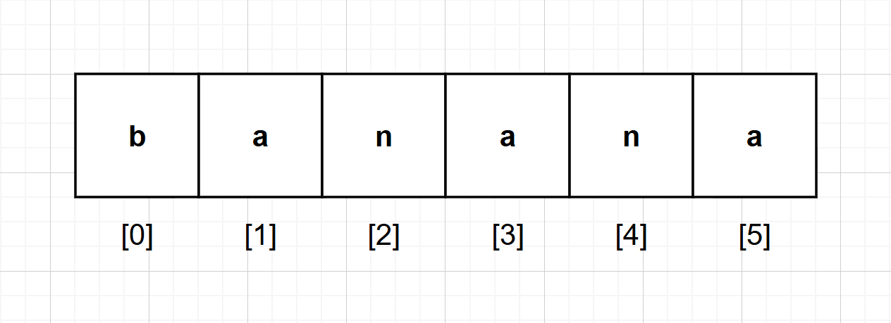 IndexError가 발생한 이유는 'banana'에는 인덱스 6에 해당하는 문자가 없기 때문이다. 문자열의 인덱스는 0부터 시작하므로, 6개의 문자로 된 문자열이라면 유효한 인덱스 범위는 0부터 5다. 따라서 마지막 문자를 얻으려면 length에서 1을 빼야 한다.
